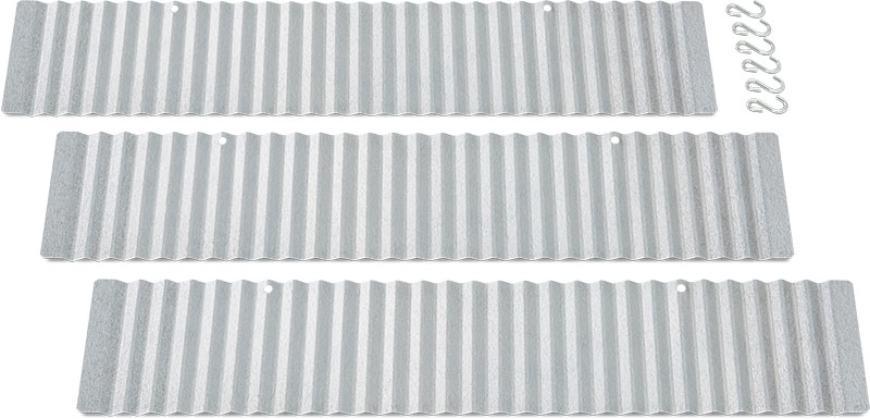 Piezas modulares fabricadas en acero galvanizado con sus respectivos ganchos para sujetarse en la paella, sartén... Según el diámetro del recipiente de cocina, se usarán más o menos módulos para evitar que se apague el quemador.